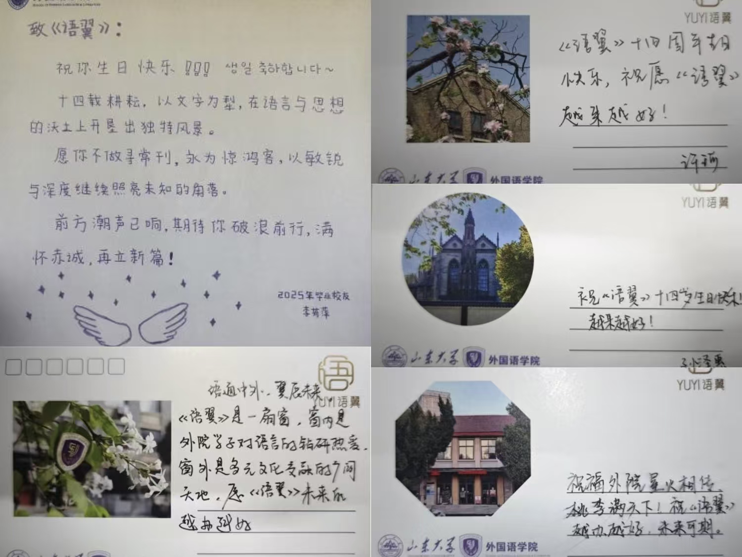 创刊成员、金沙集团3354cc副教授杨凯回顾办刊初心,寄语道:“培养学术发表的园地,锻炼综合能力的沃土。愿《语翼》越来越好!”同样作为创刊团队一员的山东师范大学历史文化学院团委书记、学工办主任董欣则以“语通世界,翼动青春!”表达对刊物的深厚情感,并祝愿“语翼展翅,绘就更多精彩,愿外院蓬勃,书华丽篇章!”