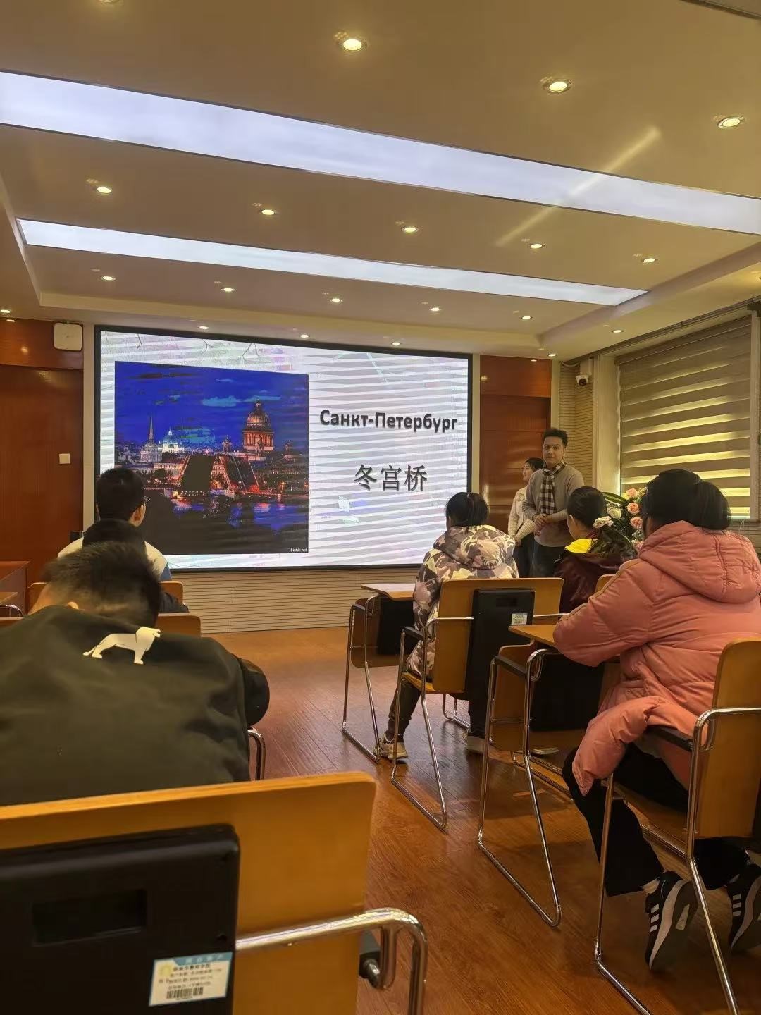 此外,志愿者还铺开俄罗斯地图,用生动讲解带孩子们认识这个横跨亚欧的国度。展示传统长袍、皮帽等服饰时,大家好奇地看着图片上的纹理;聊到新年,有趣的动画视频展示了俄罗斯枞树装饰、严冬老人送礼物的习俗。课堂里满是好奇的提问,在趣味互动中,俄罗斯的独特风情深深印在孩子们心里。