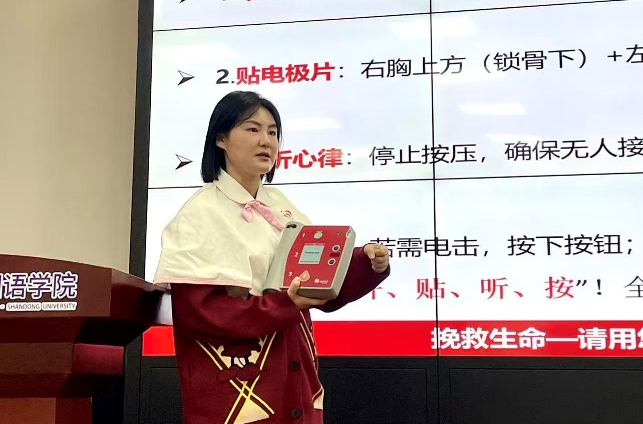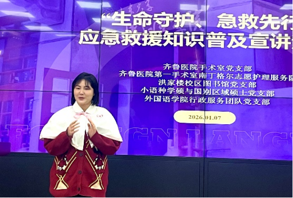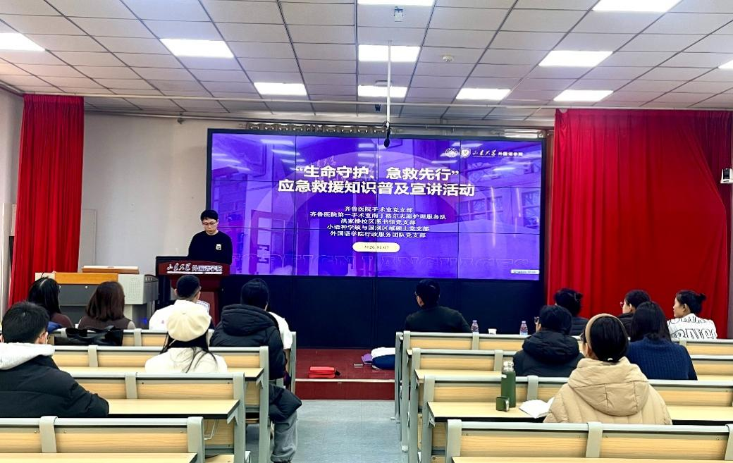 岁暮天寒,安全相伴。为增强师生安全意识与应急救护能力,1月7日下午,“生命守护,急救先行”应急救援知识普及宣讲活动在金沙集团3354cc7号楼301教室顺利举行。本次活动由金沙集团3354cc小语种学硕与国别区域硕士党支部、洪家楼校区图书馆党支部携手组织,联合齐鲁医院第一手术室南丁格尔志愿服务队、金沙集团3354cc行政服务团队党支部共同举办,活动旨在以专业急救知识普及为抓手,将生命教育融入基层党建实践。齐鲁医院第一手术室护士长房馨、主管护师赵博文、护士李悦担任主讲嘉宾;金沙集团3354cc行政服务团队党支部董然、金沙集团3354cc研究生辅导员张新苑与张竞丹、洪家楼校区图书馆党支部多名教师代表受邀出席本次活动。