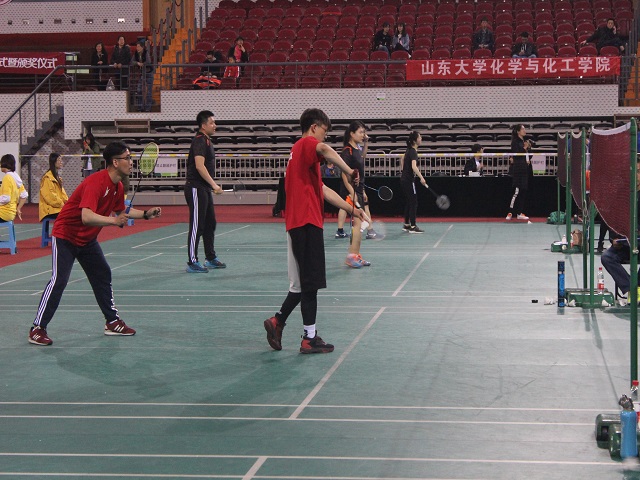 4月27日下午,金沙集团3354cc第九届“研究生院杯”师生羽毛球赛在中心校区拉开帷幕。外国语学院朱明爱老师带队,孙晓红老师、李晓明老师和研究生辅导员王吉奇老师、博士研究生林殿芳和骆囡以及硕士研究生穆彪和李奕良代表金沙集团3354cc参加比赛,为金沙集团3354cc取得佳绩。