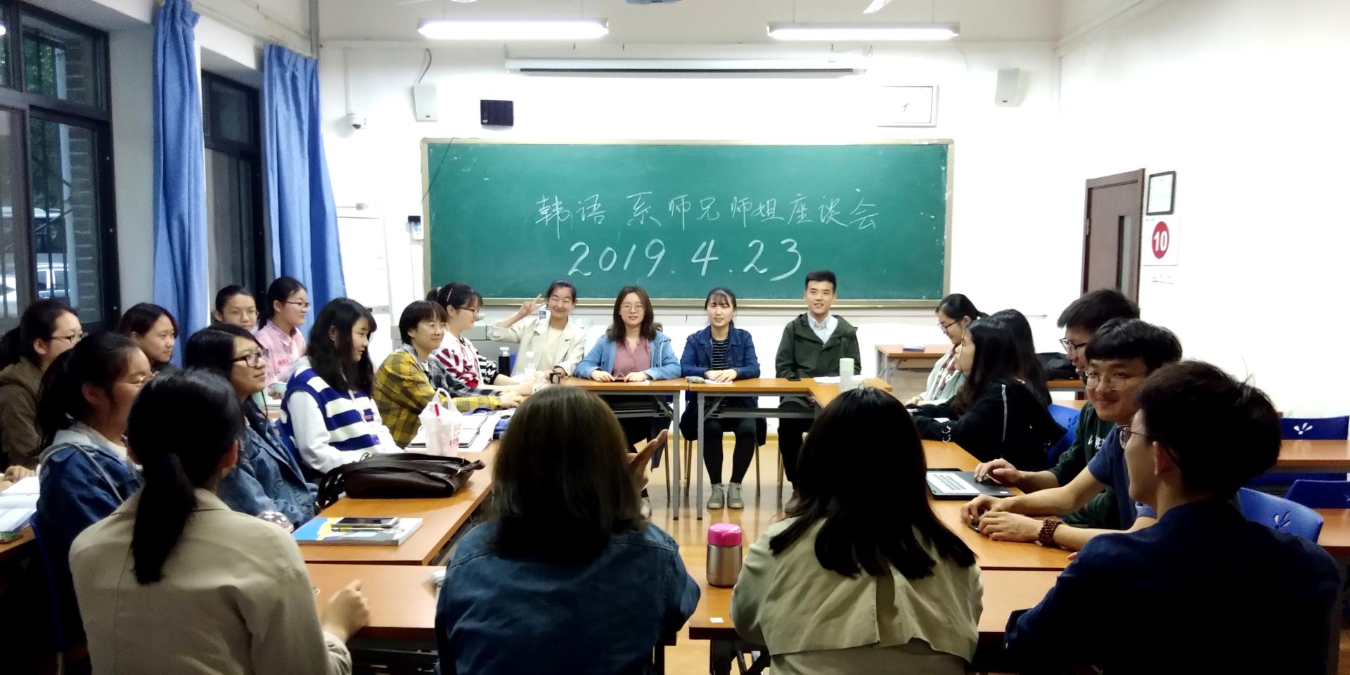 李梓萌,现已被录取为对外经济贸易大学朝鲜语口译专业研究生。她从自身学习韩语的经验和教训出发为大家分享了诸多学习心得,并且为18级的同学说明了未来韩语就业的方向与前途,强调了语言学习的连续性与持久性,同时她也建议学弟学妹们可以认真经营好自己的生活和学习,摆正态度,不负自己大学的青春时光。季小涵,现已被录取为北京师范大学新闻传播学院研究生。她建议同学们尽早确定自己的兴趣和理想,并为实现自己的目标付出努力。她从自身的经历出发,为大家分享了自己的支教梦,并且还表示自己之所以考新闻传播是因为自己有一个做电台主播的梦想。她认为学习是一种能力,与专业无关,只有培养自己会学习、善于学习的能力才能在今后的工作与生活中无往不利。孙馨慧,现已被录取为中国传媒大学电视学院广播电视专业研究生。她从自身的教训出发,为各位同学分享了自己的体会,她强调大学生活中要重视对自身的改变,希望大家不要轻易向命运妥协,而是可以通过努力去调整自己的方向。同时,她强调学好本专业的课程是基础,做好一件事需要极强的耐性和毅力,并督促各位18级同学努力提高自身的知识水平,在生活中及时调整心态,保持积极乐观的心情。