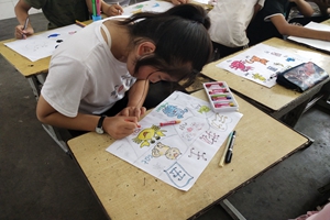 最后支教团与孩子们一同返回小学,开始今天的授课。刘炜老师为孩子们教了英文歌曲《小星星》,在熟悉了歌曲之后,刘炜老师找了一名同学领唱,伴随着孩子们美妙悠扬的歌声,第一节课结束。随后由吴英娜老师带领大家做以“动物“为主题的手抄报。孩子们的想象力很丰富,他们细心地为画上的小动物涂上颜色,并标注好各个动物的英文名称,所有人都是小小画家。