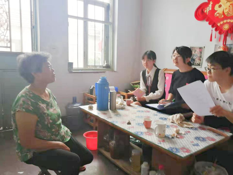 参观结束后,调研团走进当地居民家中,邀请二十二位当地居民协助填写调查问卷。尽管在采访的开始,不论是当地村民还是调研团的同学们都拘谨局促,但是随着交流的深入,气氛逐渐变得欢快融洽,更有年长的居民如同长辈一样亲切的关心同学们的学习和生活。居民们敞开心扉向同学们表达了对于村内经济、教育、政策、基础设施等多方面的看法,不仅传达了对于村子在新时代到来之后的飞速发展的自豪,也诉说了对于现存问题的担忧,同学们也就自己关心的问题向居民们进行更深一步的提问,全方面的了解了村子发展状况。结束走访之后,团队将社会现实与豆金河村实际发展情况相结合,针对豆金河村现存的垃圾分类、互联网普及等问题向村支书提出自己的建议。二十二位居民的走访结束后,调研团的同学们已经被当地村民的温暖所感染,对这个只有几面之缘的村落充满留恋与不舍。