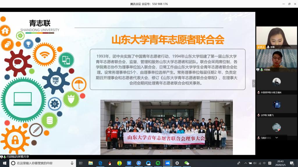 此次团课以“学雷锋,战疫情,讲奉献,爱劳动”为主题,连线优秀志愿服务组织代表、先进志愿者个人,通过他们的先进事迹分享、经验交流,畅谈新时代山大人应如何发扬劳动精神,积极参与志愿服务,激励我校青年学子传承新时代雷锋精神,为战胜新冠肺炎疫情,贡献山大智慧、青年力量。