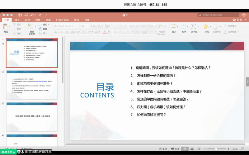 3月28日晚,金沙集团3354cc开展“‘职’在必得”系列活动之线上就业技巧分享会。2016级法语系周吉熠担任此次活动的经验分享人,就当前情况下一系列求职就业问题做出了自己的分析和建议,旨在通过对就业渠道、面试技巧的分享和解读减少同学们的就业恐惧,强化就业信心,从而掌握更多面试技巧,把握职场定位,为职业生涯提前做出规划和准备。