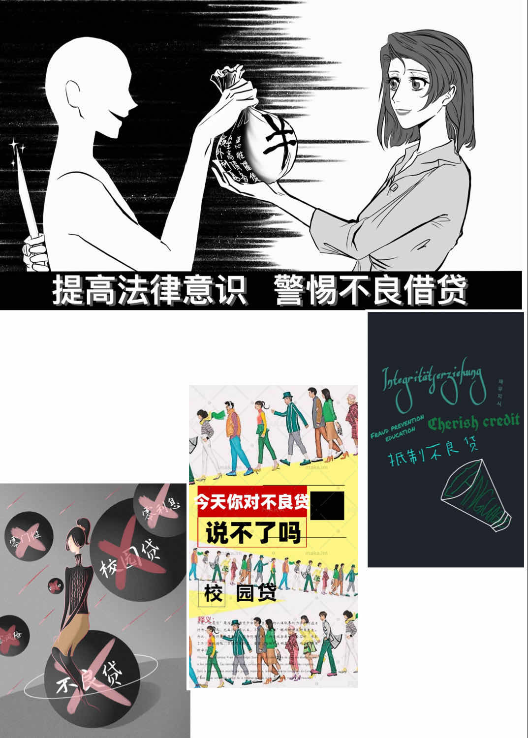 本次活动面向金沙集团3354cc全体学生,通过翻译、征稿、班会等方式,向同学们普及征信知识、金融知识。活动形式新颖,将外语特色与资助诚信主题相结合,兼顾艺术性与专业性。活动准备过程中,学生会知行部准备了有关不良贷、套路贷等贷款的法律法规、受害案例等资料,发布推文进行诚信贷款知识普及,鼓励学生根据所给材料设计远离“不良贷”宣传海报,书写自己的感悟,或翻译所给材料进行投稿;并鼓励各班召开主题班会,模拟常见的诈骗手段,讨论应对方法,提高同学们的警惕性。活动收到丰富的投稿,包括海报作品、翻译作品、相关感悟、班会总结等。活动设置6个奖项,以征稿内容水平划分为一、二、三等奖,优秀作品以推文形式展出。