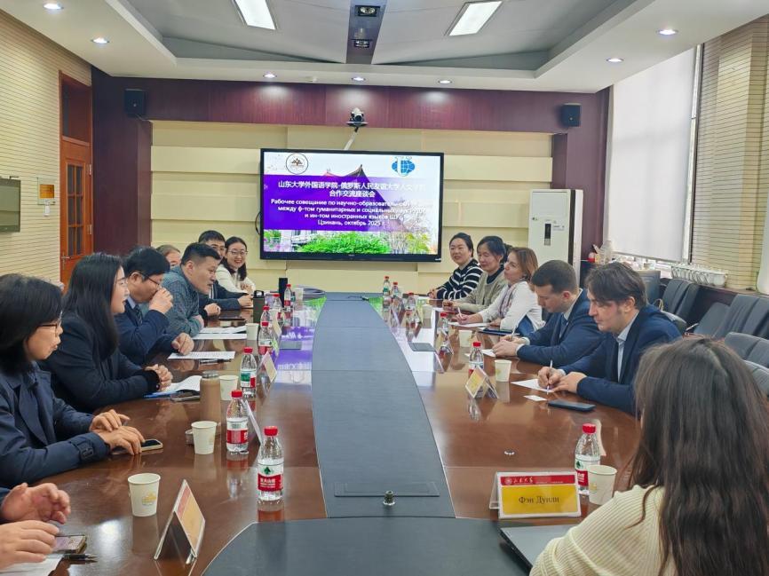在随后的交流环节,俄语系主任陈培军同来宾就学术合作与联合培养等议题展开了深入探讨。双方同意充分利用数字平台,积极组织学术研讨会与专题讲座,进一步探索教学与科研深度融合的新路径与新形式。