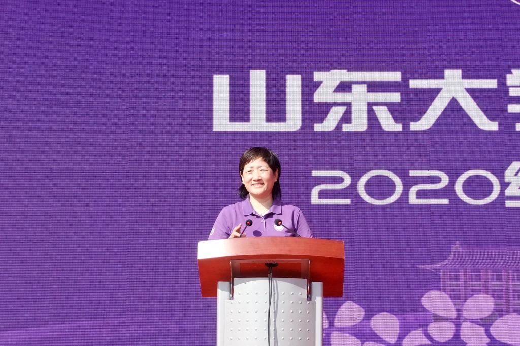 紧接着,老生和新生代表分别发表了致辞。2018级英语笔译硕士生常赛作为老生代表,对接受过高考和疫情历练的新生提出了一些学习建议。她提到,首先应心有所向,确定自己的人生目标和各阶段的小目标。其次应博览群书,审慎思辨,并内化为自己的知识储备,这是拓展专业知识、提高专业素养的必然要求。最后,她鼓励新生积极参加竞赛等专业实践,在实践中提高自己的专业知识和表达能力。2020级本科新生代表郭佳音随后进行发言。她认为,大学是一个起点,新生难免感到迷茫疑虑,但山大外院给了她家的归属感,在与良师益友相伴过程中,她将不断成长。同时,她也对未来四年的大学生活怀有极大的期待,并希望能够参与到外院新篇章的建设中,为外院的发展增砖添瓦。