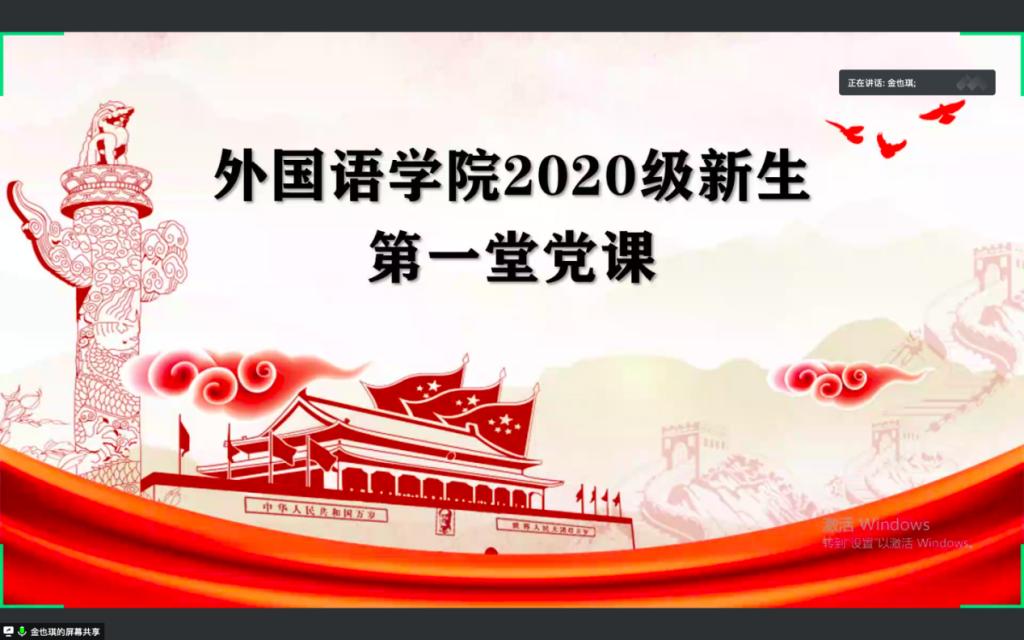 10月16日,金沙集团3354cc举行2020级新生第一堂党课。本次党课以线上的形式开展,旨在通过系统介绍党组织,提高新生思想高度,鼓励新生积极入党。党委副书记魏鲁鸿出席并在党课中发言;金沙集团3354cc本科生第二党支部书记、2016级英政班金也琪担任主讲人。2020级辅导员张明明主持党课。