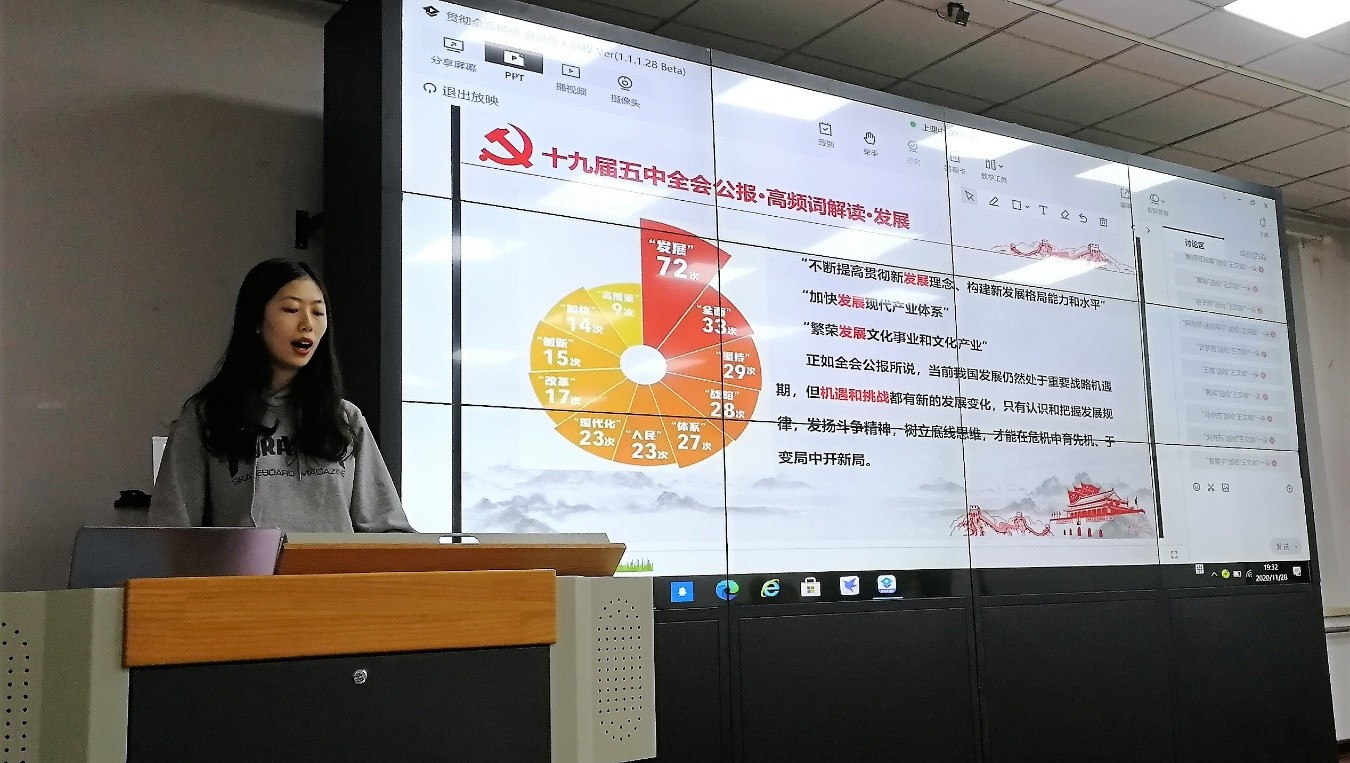本次宣讲从十九届五中全会公报的高频词、“十三五”规划期间我国取得的重大成就、现阶段我国发展环境面临的深刻复杂变化,以及“十四五”规划和二〇三五年远景目标四个方面为同学们讲解党的十九届五中全会内容,传达会议精神。