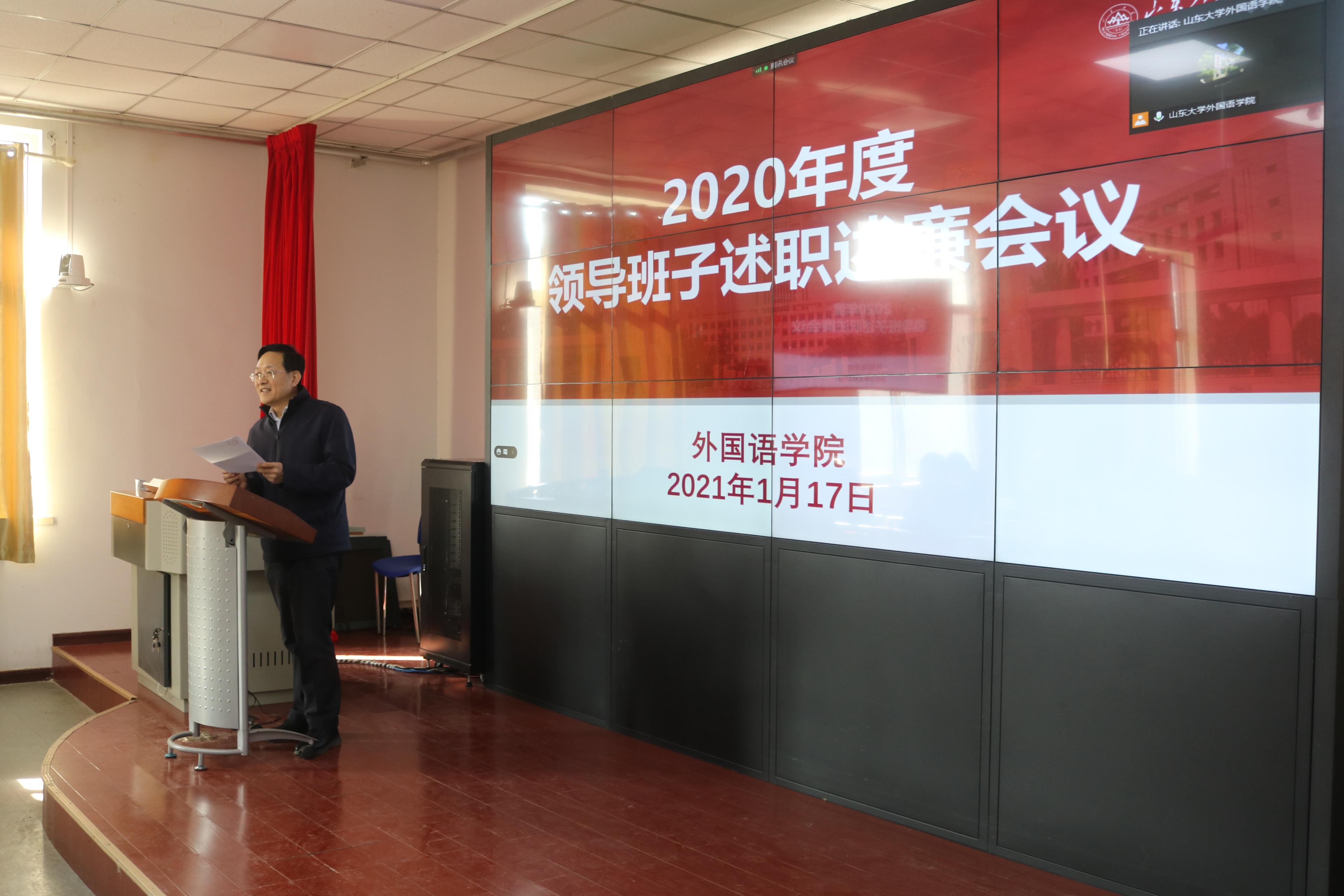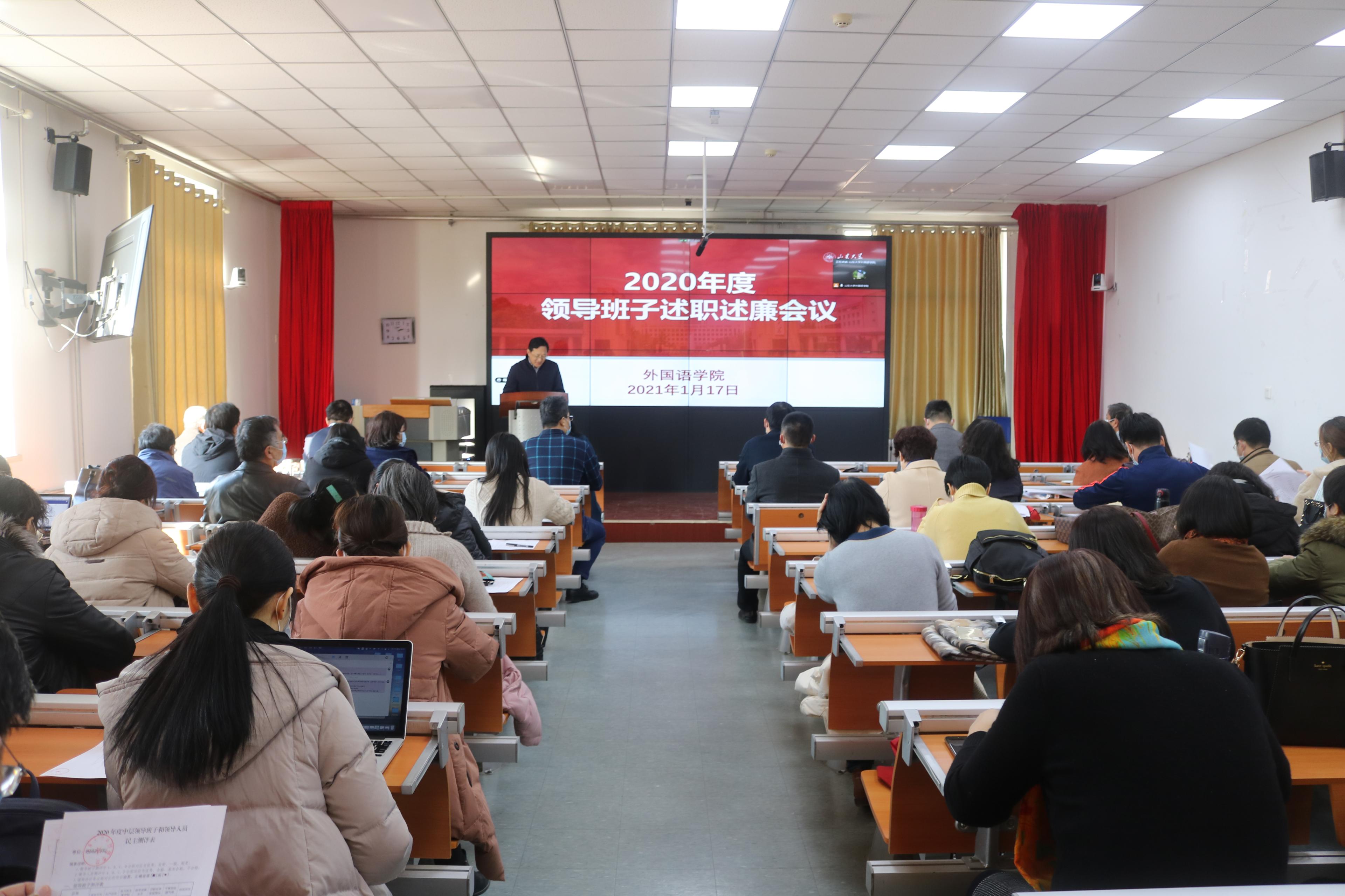 2021年1月17日下午,金沙集团3354cc举行2020年度领导班子和领导人员述职述廉会议。会议由党委常务副书记薛佩军主持,学院领导班子成员及教职工代表参加了会议。