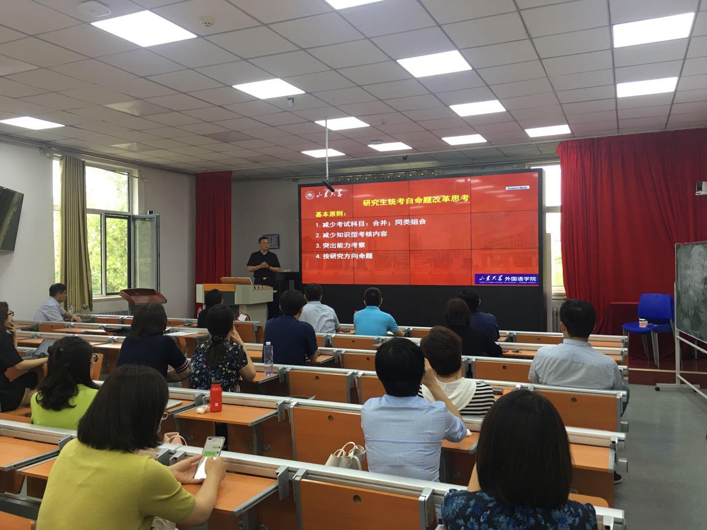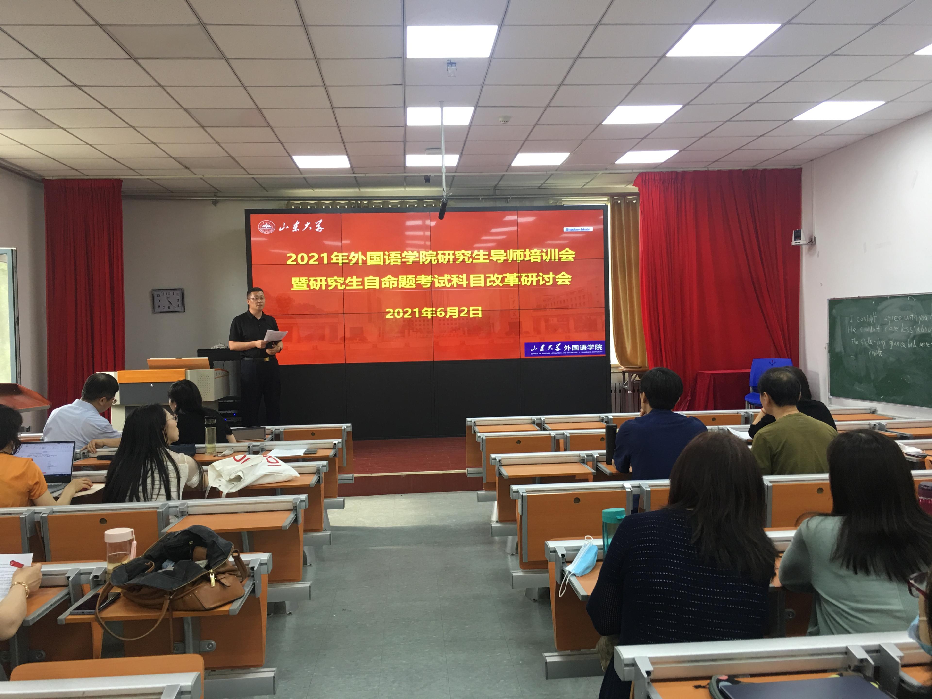 为深入贯彻落实习近平总书记关于研究生教育的指示精神和给《文史哲》编辑部全体编辑人员重要回信精神,持续推进研究生教育高质量发展,6月2日,金沙集团3354cc召开2021年度研究生导师培训会暨研究生自命题考试科目改革研讨会。金沙集团3354cc研究生院、党委研究生工作部招生办李汝宾主任及王标老师受邀参加研讨会,金沙集团3354cc党委书记、院长王俊菊,党委常务副书记薛佩军出席培训会,金沙集团3354cc研究生导师及研究生管理科工作人员近60人参加。培训会由学院分管研究生教育副院长李建刚主持。