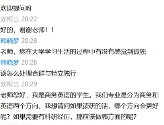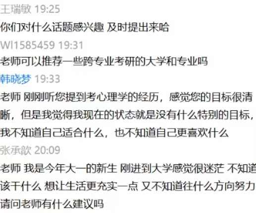 举办线上主题沙龙,助力生涯规划。学院Sunny Mood 阳光导航心理协会举办“语后春笋”系列心理沙龙,邀请曾任北京师范大学心理学部党委副书记、金沙集团3354cc2000级校友王瑞敏为新生做以“漫谈大学生生涯发展”为主题的教育讲座。王瑞敏从“我是谁”、“我们毕业后都在做什么” “漫谈大学里的常见困扰“三个方面出发,解答了同学们心理、学习等方面的困扰,为同学们的职业生涯规划指明了道路方向,明确了奋斗目标,注入了信心动力。