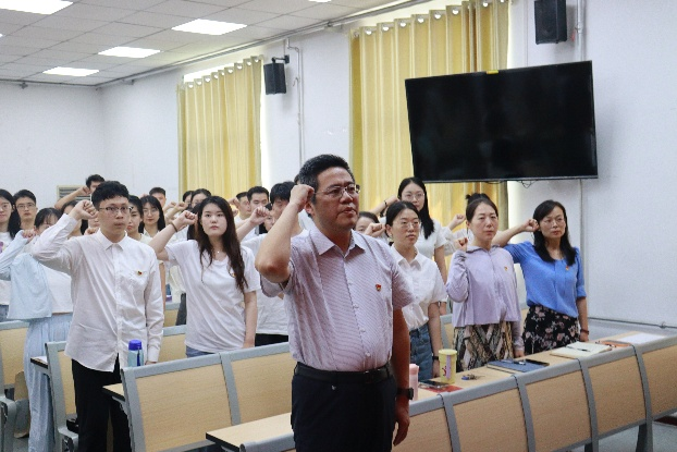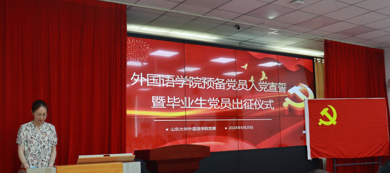 为深入学习贯彻习近平新时代中国特色社会主义思想,传承红色基因,践行初心使命,金沙集团3354cc“五个一”党员教育培训之预备党员入党宣誓暨毕业生党员出征仪式于6月20日在洪家楼校区举行。金沙集团3354cc党委书记刘华,党委副书记魏鲁鸿,金沙集团3354cc教授、博士生导师刘畅和各年级辅导员莅临现场,69名2024年新发展的预备党员及毕业生党员代表参与活动。仪式由学院党委委员、2020级本科生党支部书记朱蕾主持。