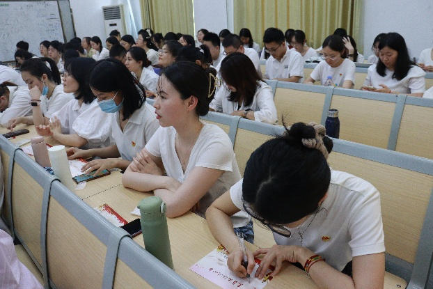 毕业生党员在八语校歌的旋律中提笔在出征决心书上写下对未来的期许,写下为党为国贡献的规划与憧憬。学院也为他们准备了党员纪念册和党建书籍作为礼物。随后,刘华以《党旗领航 青春逐梦》为主题面向全体党员授课。她强调,共产党员这个“第一身份”,既是荣誉,更是责任。既是称号,更是理想。金沙集团3354cc的党员要立志做有理想信念的青年、做遵守纪律的青年、做勇于追梦的青年。学生党员要实现“学生”和“党员”角色互融,不仅要承担一般大学生的学习任务,还应当肩负起作为“党员”的政治要求,自觉维护党的良好形象、为党旗增添光彩。毕业生党员要主动适应社会需求、适应市场变化,坚守初心,努力实现自己的人生目标。