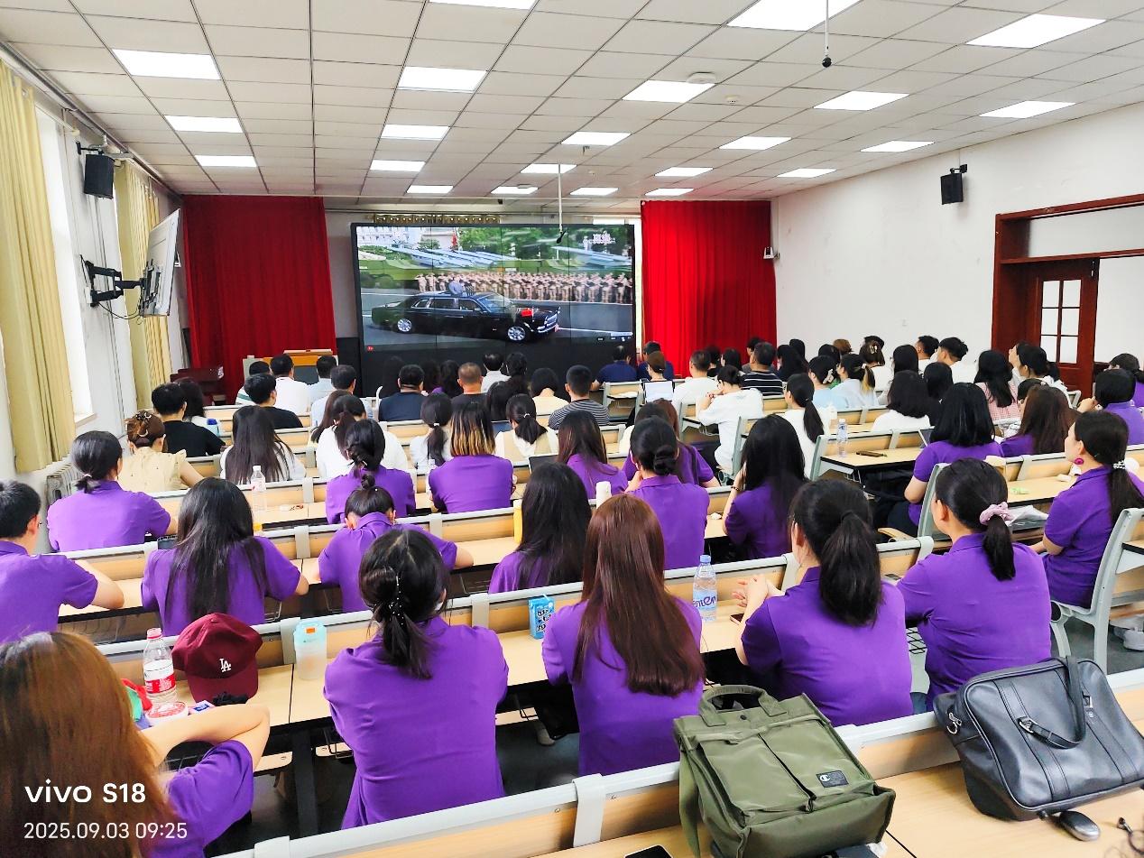 9月3日上午,金沙集团3354cc组织师生集中收听收看纪念中国人民抗日战争暨世界反法西斯战争胜利80周年大会,共同铭记历史、缅怀先烈,激励全院师生振奋精神、开创未来。