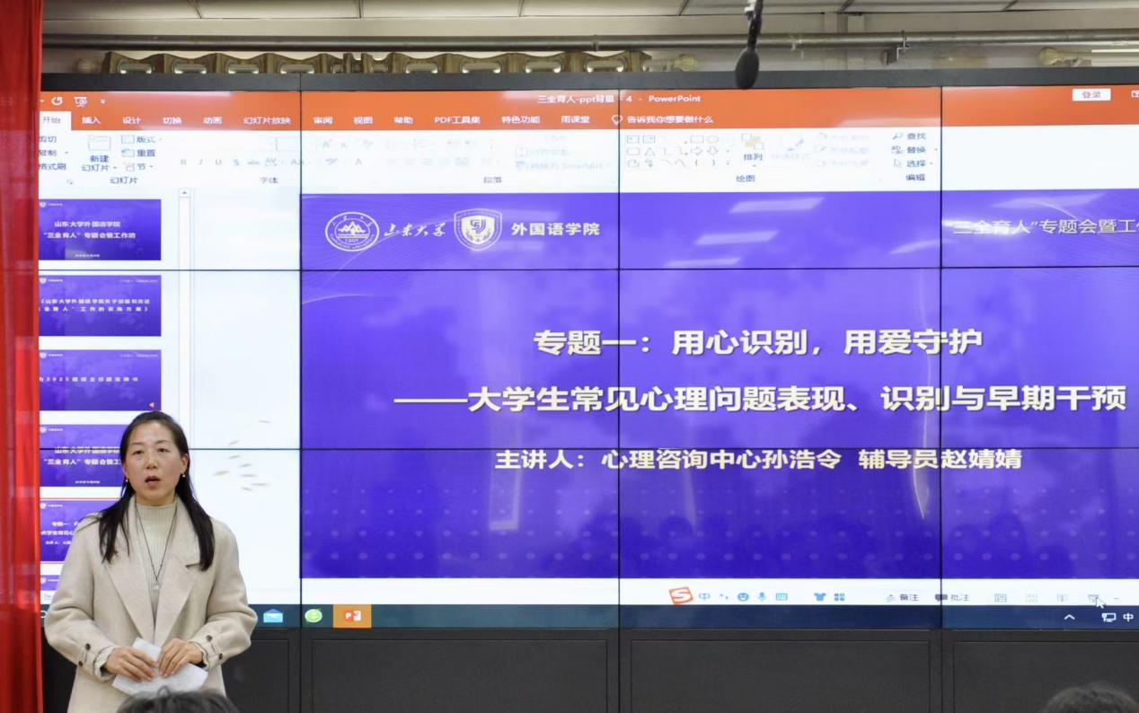 活动特别邀请金沙集团3354cc学生心理健康教育与咨询中心孙浩令、学院辅导员赵婧婧共同主讲“用心识别,用爱守护——大学生常见心理问题表现、识别与早期干预”专题,系统讲解了大学生常见心理问题的表现特征、识别方法与早期干预流程,强调教师需通过课堂表现观察、日常交流沟通捕捉异常信号,为学生提供全流程心理支持,让学生在校园中感受到理解与关怀。