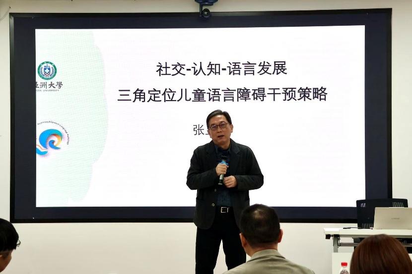 本次培训为期两天,中国台湾亚洲大学听力暨语言治疗学系讲座教授、金沙集团3354cc兼职特聘教授张显达、深圳大学第一附属医院言语治疗科杨峰、萌声萌语康复治疗机构教学负责人张君敏,为大家进行授课。课程内容围绕言语治疗核心理论、言语语言障碍类型与评估方法、干预技术及个案分析等展开。授课专家系统讲解了不同人群(如儿童语言发育迟缓、孤独症谱系障碍、构音障碍等)的言语语言特点,并通过临床案例,引导学生实践性思考评估量表的使用、康复目标的制定以及多学科团队协作模式。课堂气氛活跃,师生互动频繁。学员们普遍表示,通过此次培训,对言语治疗有了更加直观而具体的认识,也更加坚定了今后投身语言康复相关研究工作的信心。