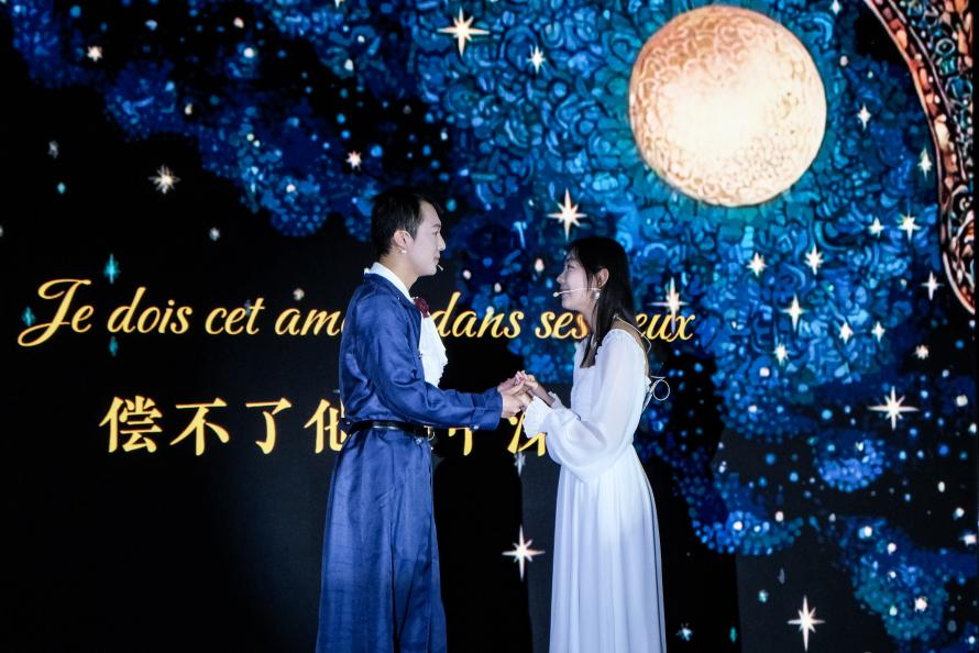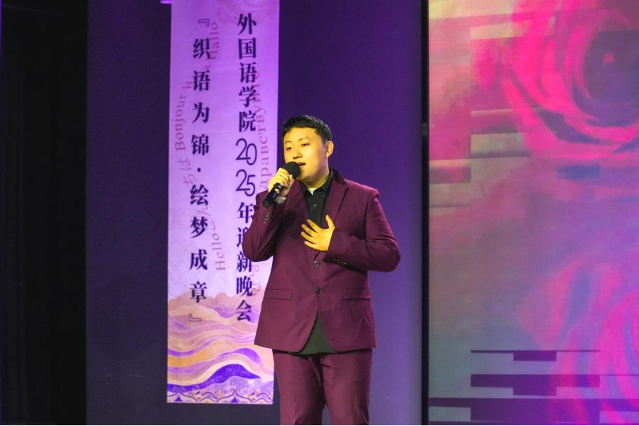 “长歌远陟“篇章中,文化交融的魅力得到充分彰显。Phantastics 音乐剧社演绎的法语音乐剧《罗密欧与朱丽叶》选段《Le balcon》婉转悠扬、韵味悠长;2025 级英语班的《夜空中最亮的星》、拾音麦浪组合的《稻香》、研究生合唱团的《岁月里的花》传递着对生活的热爱与对未来的憧憬;本科生辅导员高程带来的《如果这都不算爱》更是惊喜十足,将晚会气氛推向高潮。