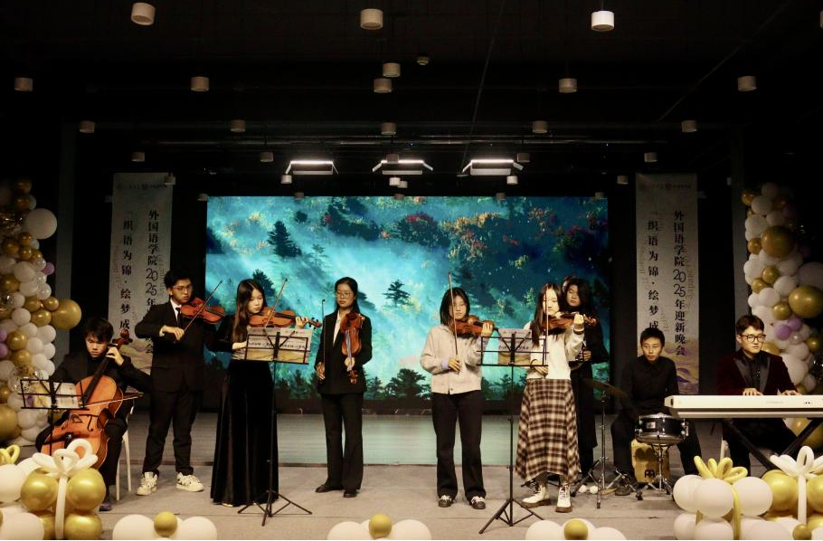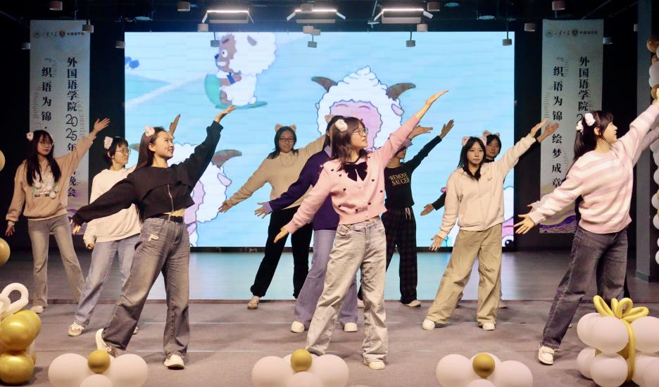 本次晚会以 “织语为锦,绘梦成章” 为主题,精心设置 “锦年初逢,新语欣程”“语丝成彩,漫溯时空”“锦裳共舞,知行致远”“长歌远陟,锦程万里” 四个篇章,通过舞蹈、歌曲、器乐、魔术、朗诵、音乐剧等丰富多样的艺术形式,充分展现了外院学生的蓬勃朝气与青春风采,集中彰显了学院融通中外的专业特色与文化底蕴。
