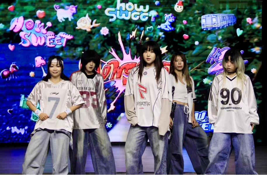 “锦裳共舞” 篇章里,歌舞交融绽放别样光彩。2025 级英法双学位班的歌舞串烧《酒醉的大小姐永远 OK》、2025级英政双学位班的舞蹈串烧《童年动画》活泼灵动,Paws&Rhythm 组合带来的舞蹈《借来的猫》俏皮可爱,扶宇璠与周怡辰演唱的歌曲《Die With A Smile》婉转动人,让观众沉浸式感受艺术之美与文化之韵。