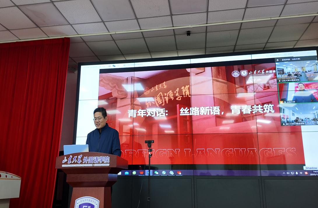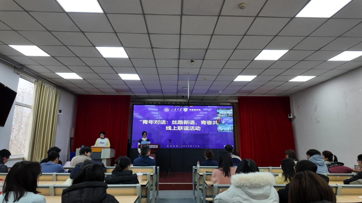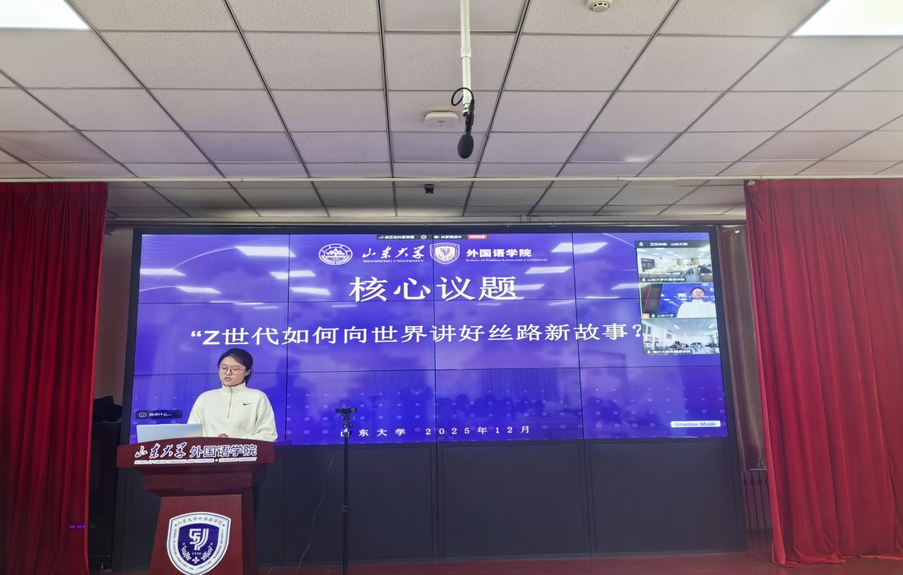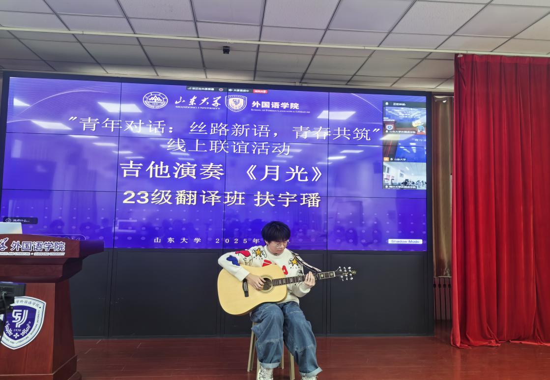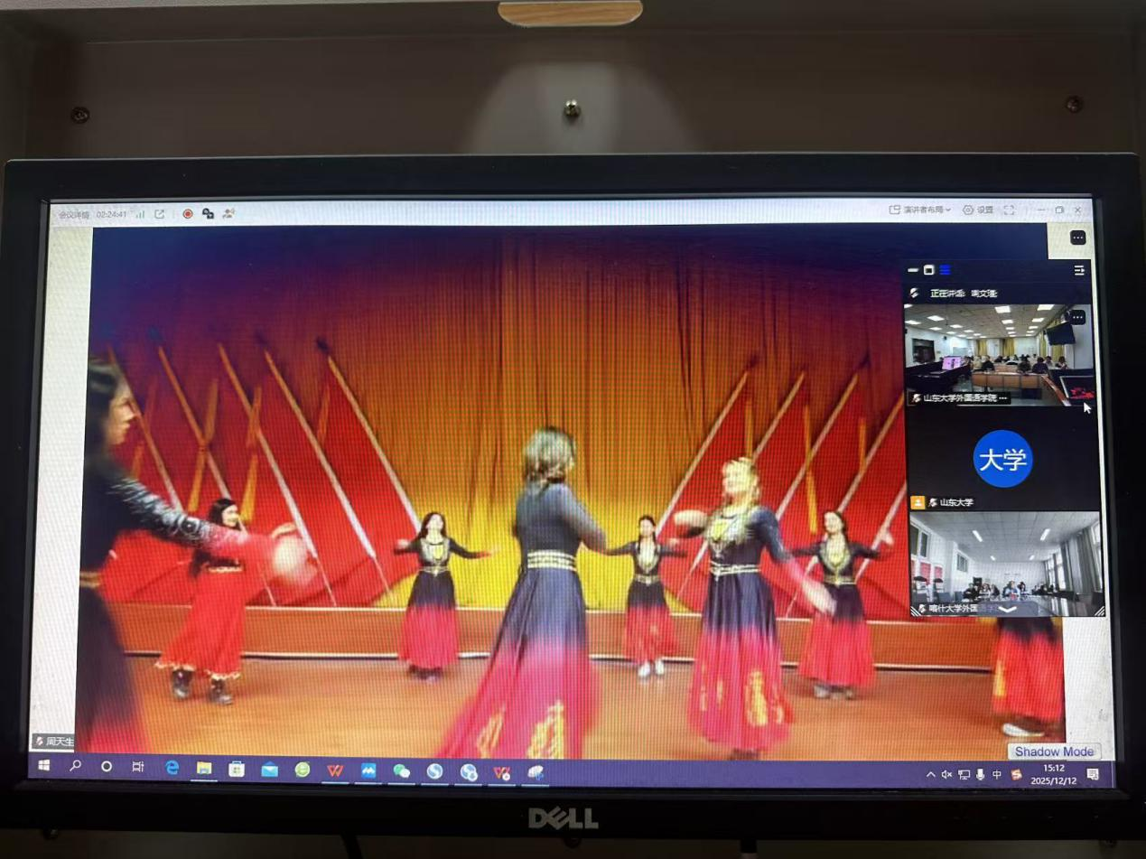 活动设置了“家乡风采秀”与“青年使命圆桌派”两大环节。在“家乡风采秀”环节中,金沙官网通过吉他演奏《月光》、播放“外语话中华”国际传播实践专项视频《话泉城》、分享济南文化现代化创新实践等形式,生动展现了泉城济南的历史底蕴与当代活力。喀什大学金沙集团3354cc则以民族舞蹈、太极拳表演等节目,生动呈现了“喀什噶尔的风情”与“天山脚下的音乐”,充分彰显了新疆多民族文化的鲜明特色与活态传承。在“青年使命圆桌派”环节,两院学生围绕“Z世代如何向世界讲好丝路新故事”这一核心议题,聚焦“内容破圈”“形式创新”“未来合作”三个方向展开深入讨论,共同倡议共建“丝路青年国际传播联盟”,推动实现文化传播渠道与内容的共创共享。