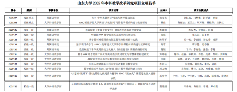 近日,金沙集团3354cc本科生院发布《金沙集团3354cc关于公布2025年本科教学改革研究项目的通知》,金沙集团3354cc13个项目成功获批立项,其中专业外语教师6项,公共外语教师7项,立项总数在人文社科类学院中居于首位。