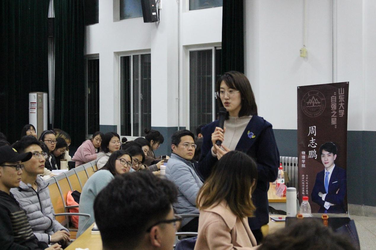 此次宣讲会为洪家楼校区的同学们提供了和身边的优秀“榜样”面对面交流的机会,是校园文化育人的重要举措,是三全育人的有效抓手,有助于同学们在“拔节孕穗期”能“扣好第一颗扣子”。