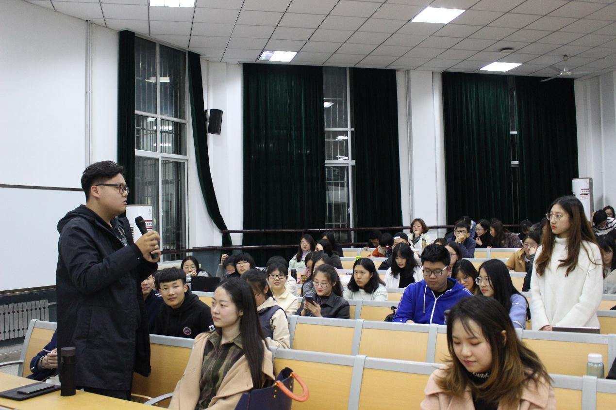 艺术学院2016级本科生、国家奖学金获得者周文豪从自我介绍、学习经验、大学生活三方面出发,就如何锻炼综合学习能力、提高学习主动性和学习效率分享了自己的经验和建议,使同学们更深入地理解了“Where there is a will, there is a way”的含义。