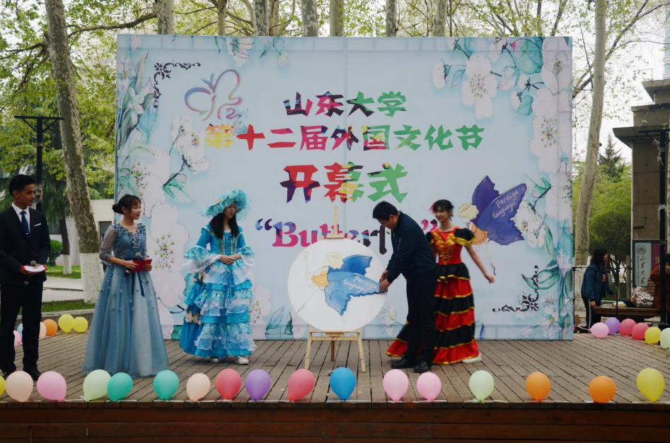 4月13日下午,第十二届外国文化节在中心校区小树林隆重开幕。开幕式邀请到中国翻译协会常务理事徐亚男、国际教育学院党委副书记王璐璐、党委宣传部刘金帅、校团委马海波、学生就业创业指导中心张莹、金沙集团3354cc团委书记朱蕾出席。金沙集团3354cc党委副书记魏鲁鸿揭幕。各学院学生、教职员工参加活