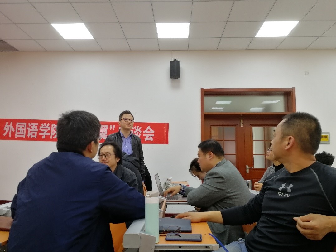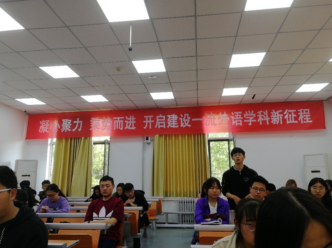 随后,在刘洪东的主持下,座谈围绕“小语种专业开设英语课程的相关问题”、“新语翼讲坛的选题和组织方式”、“学院淳化学风活动”三个议题展开了讨论。与会师生结合实际,畅所欲言。学生代表们从英语分级班现状、四六级应试、英语语感保持、英语实际应用、通识教育学习等角度表达了自己的观点。老师们的讨论同样热烈,德语系于洋老师指出,小语种学习和英语学习并不冲突,并以个人本科英德双语学习经历为例,指出了多语种复合人才培养的必要性,得到了众多老师和同学的认可。