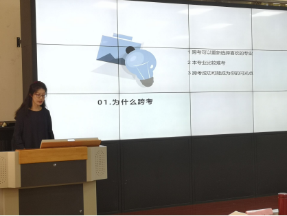 分享会伊始,主持人进行开场致辞,阐述了此次分享会的大致流程并且隆重介绍了到场的嘉宾。之后,四位优秀跨专业生结合自身经历给我们分享了她们的宝贵经验和建议。
