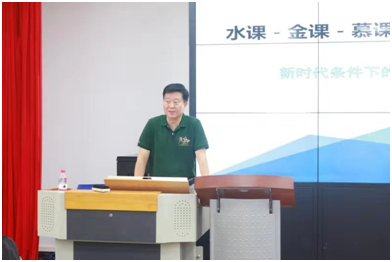 金沙集团3354cc常务副书记薛佩军致开幕辞,表达对王铭玉教授欢迎并介绍了此次研讨会的背景及意义。随后王铭玉教授做了《水课、金课、慕课--新时代条件下的课程建设》的学术报告。王教授结合国家针对高等教育提出的新要求和新精神,围绕课程建设,结合国家文件精神和具体示例重点对水课和金课的比较、五大金课类型、课堂教学五重境界、金课建设五条路径和五项保障等进行了具体阐释,最后王教授还结合自己的《世界跨文化交流》课程介绍了在线课程的建设与应用。随后刘洪东副院长和崔校平副院长分别做了《金沙集团3354cc本科教育由大到强:背景、挑战与举措》和《金沙集团3354cc公共外语教学改革情况介绍》的报告,分析学院专业教学和大外教学所面临的挑战和困难,以及下一步改革的思路和方向。
