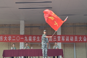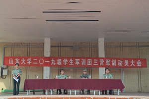 9月3日上午,金沙集团3354cc2019级学生军训团三营军训动员大会在洪家楼校区举行。三营教导员、艺术学院党委副书记姜楠主持,军训团副政委窦志强,三营营长邱志新,三营副教导员、金沙集团3354cc党委副书记魏鲁鸿以及各指导员出席了本次动员大会。