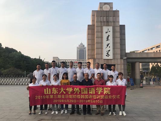 9月10日上午,金沙集团3354cc“2019年第三期全日制初级韩国语培训班结业仪式”在洪家楼校区举行。学院办公室主任周俊基,山东国立经济技术合作有限公司总经理侯永智、韩语系副教授李成道、继续教育秘书董然及15名学员出席结业仪式。仪式由侯永智主持。
