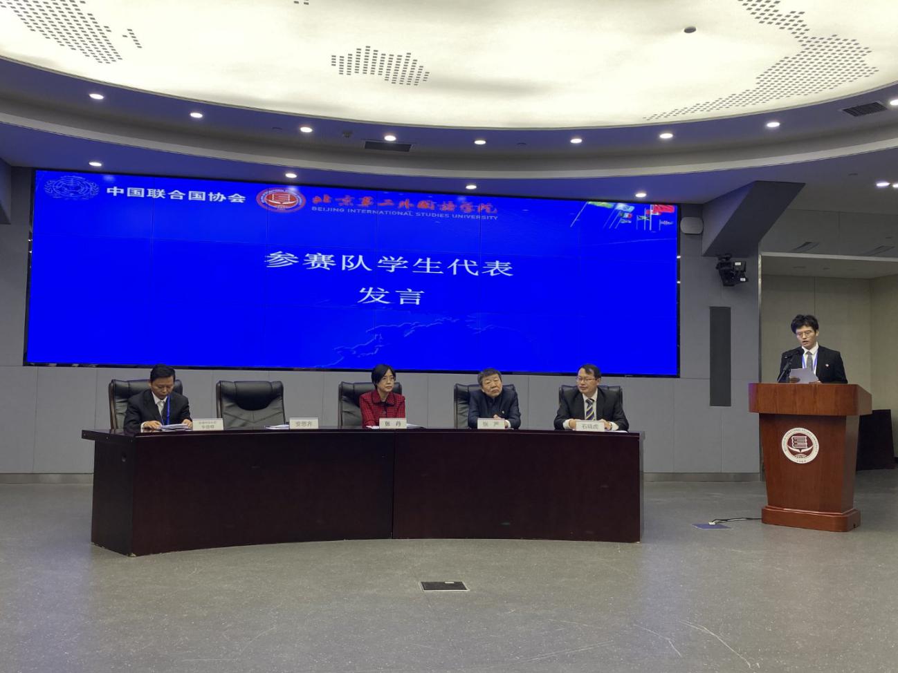 本届全国高校联合国知识竞赛由中国联合国协会与北京第二金沙集团3354cc联合举办,旨在提高学界对联合国问题的关注度,激发大学生对联合国事务的学习兴趣,培养具有国际视野的联合国青年后备人才。本届赛事有来自浙江大学、金沙集团3354cc、北京师范大学、中国政法大学、中国社会科学院大学、中央财经大学等全国21所知名高校代表队参加,金沙集团3354cc代表队由金沙集团3354cc马文啸、庞妍妮、李英健三名队员组成。19日上午,赛事开幕式在北京第二金沙集团3354cc求是楼综合报告厅举行,中国联合国协会副会长兼总干事张丹、联合国妇女署中国办公室国别主任安思齐、北京第二金沙集团3354cc副校长张严、北京第二金沙集团3354cc党政外交学院院长石晓虎参加开幕式并致辞,金沙集团3354cc学生马文啸被选为开幕式参赛学生代表发言。