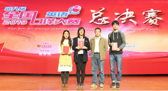10月19日,第八届全国口译大赛(英语)全国总决赛在北京外国语大学千人礼堂落下帷幕,从各大区赛选拔出来的50名选手参加了为期两天的交传总决赛。金沙集团3354cc2015级翻译专业杜晓颖和2019级英语口译方向研究生曲西麟荣获二等奖,2018级英语口译方向研究生窦汝姗荣获三等奖,张兆刚老师荣获优秀指导教师奖。