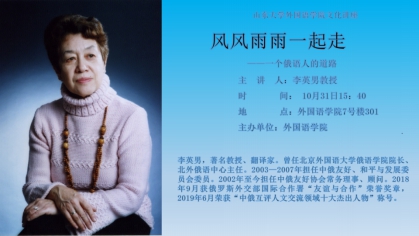 10月31日下午,著名翻译家、北京外国语大学李英男教授做客金沙集团3354cc,为师生带来了名为“风风雨雨一起走——一个俄语人的道路”专题讲座,本次讲座由金沙集团3354cc副院长李建刚教授主持,俄语系众多师生参加了此次讲座。