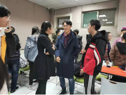 本次英语角的主题是谈论校园生活(Campus Life at Shandong University)。为了帮助同学们展开话题,教研室还特别准备了一些相关的问题,启发同学们深入探讨。在简短的开幕式之后,同学们开始了自由交流。在自由交流的过程中,外教和老师们贴心的融入同学们的讨论之中,鼓励同学们大胆发言,畅所欲言。在讨论之外,老师们既耐心的回答同学们的提问,又真诚的给同学们提出了提高英语口头表达能力的建议。外教老师很高兴能参加这次活动,她说这是她在山大工作的六年时间里第一次参加由师生共同举办的活动,而且她很吃惊本科生的英语能说得这么好。同学们热情高涨,兴致勃勃,教室里充满了欢声笑语。一位路过的外系老师,看到我们在搞英语角的活动,饶有兴致的走了进来并且用简单的英语跟老师同学聊了起来。期间,同学们都希望多开展这样的活动。首次英语角活动于八点半结束,同学们依然意犹未尽,恋恋不舍的道别,期待下周的相聚。