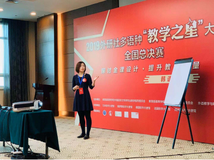 本次“教学之星”大赛以“教学评测”为办赛宗旨,鼓励广大高校多语种教师提升教学“金课”设计能力,深入探索更加高效的教学模式,促进“金课”教学理念的贯彻、教学模式的创新和教学效果的提升。大赛涵盖了日语、韩语、俄语、德语、法语、西班牙语和阿拉伯语七个语种,共分9个组别,经过初赛、复赛的层层角逐,来自全国70余所高校的112名多语种教师晋级全国总决赛。在全国总决赛阶段,李羡以高级韩语综合课为定位,围绕《新国标》对于外语类人才的培养要求,通过对所选教材及学生认知特点的精准分析,进行了设计完整、思路清晰的现场说课及生动活泼、别具特色的教学展示,赢得了专家评委的一致认可,最终从众多选手中脱颖而出,摘得桂冠。