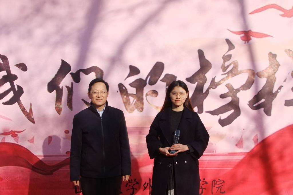 薛佩军向获得表彰的集体和个人表示祝贺,并号召全体外院学子向榜样看齐,树立远大理想,心怀祖国,发奋学习,不断增强创新能力。随后,薛佩军为19名“年度榜样人物”颁奖,分别授予他们“创新创业标兵”、“思想道德楷模”、“实践服务典范”、“文体活动达人”、“学术科研先锋”等荣誉称号。 随后,刘洪东随后为5名“自强之星”颁奖。 “自强之星”们以诗歌朗诵的形式共同讲述了《让青春因自强而精彩》的故事,分享了自己的学习、生活经历,勉励广大学子不断拼搏进取,焕发理想激情。在本次“我们的榜样”评选过程中,还涌现出13个“先进班集体”、“优良学风班”和103名“优秀学生干部”,魏鲁鸿、周俊基先后为获奖班集体及学生干部代表颁奖。典礼结束后,师生共同观看了“榜样事迹长廊”,学习模范精神,感受榜样力量。