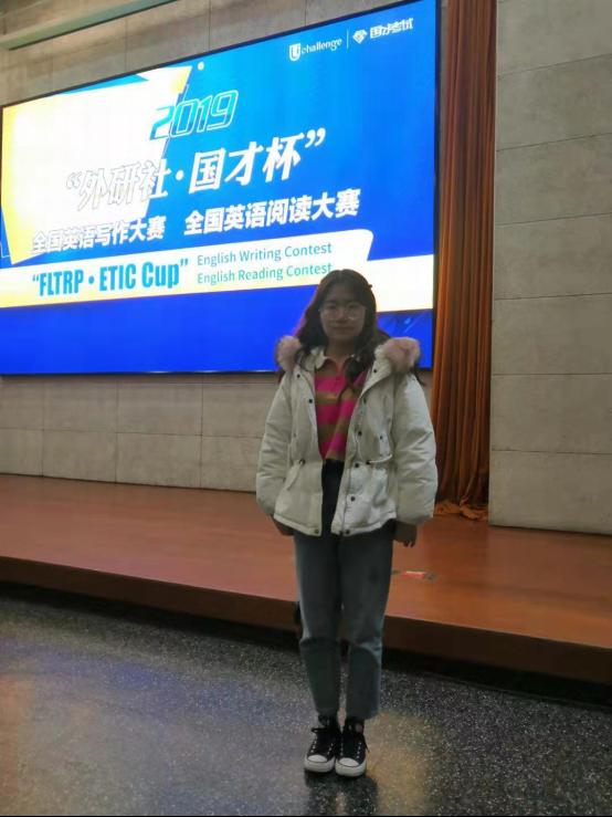12月10日,2019“外研社•国才杯”全国英语写作大赛总决赛在北京拉开帷幕。金沙集团3354cc2017级英法班学子周凤鸣斩获佳绩,获全国总决赛一等奖。