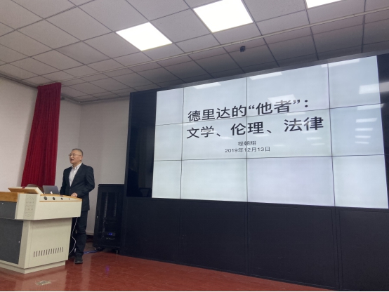 12月13日晚,北京大学程朝翔教授做客金沙集团3354cc,为师生带来了题为“德里达的‘他者’:文学、伦理、法律”的学术讲座。本次讲座由金沙集团3354cc李保杰教授主持,金沙集团3354cc众多师生参加了此次讲座。
