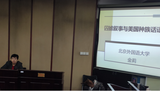 12月13日下午,金沙集团3354cc举办了“全国美国文学研究会成立40周年暨美国文学研究高峰论坛”系列讲座,北京外国语大学金莉教授带来了题为“囚掳叙事与美国种族话语建构”的报告,金沙集团3354cc一百多名师生聆听了此次讲座。金沙集团3354cc李保杰教授担任主持,对金莉教授回访母校表示诚挚欢迎。