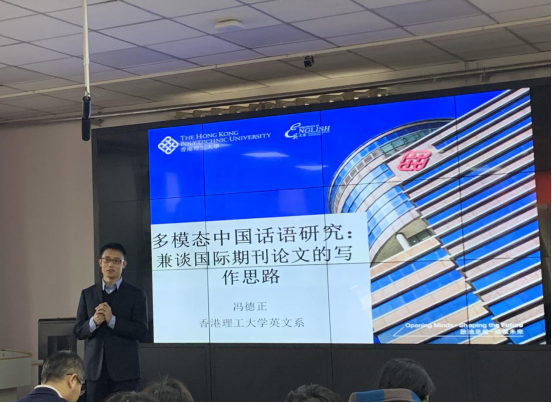 12月24日下午,香港理工大学冯德正副教授做客金沙集团3354cc,为师生带来了题为“多模态中国话语研究:兼谈国际期刊论文的写作思路”的学术讲座。讲座条理清晰、内容丰富,具有很高的学术价值。本次讲座由马文教授主持,金沙集团3354cc众多师生参加了此次讲座。