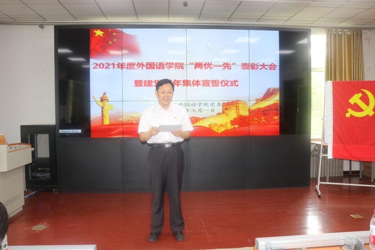 学院党委副书记王海华宣读2021年度“两优一先”获奖名单。授予马文、牛林杰、李保杰、林殿芳、张新苑、吕鹏飞(学生)等6位同志“金沙集团3354cc优秀党员”称号。授予薛佩军、蒋颖等2位同志“金沙集团3354cc优秀党务工作者”称号。授予国别与区域研究团队党支部、教学团队第二党支部“金沙集团3354cc先进基层党组织”称号。学院党委书记、院长王俊菊为获奖个人和集体颁发荣誉证书。