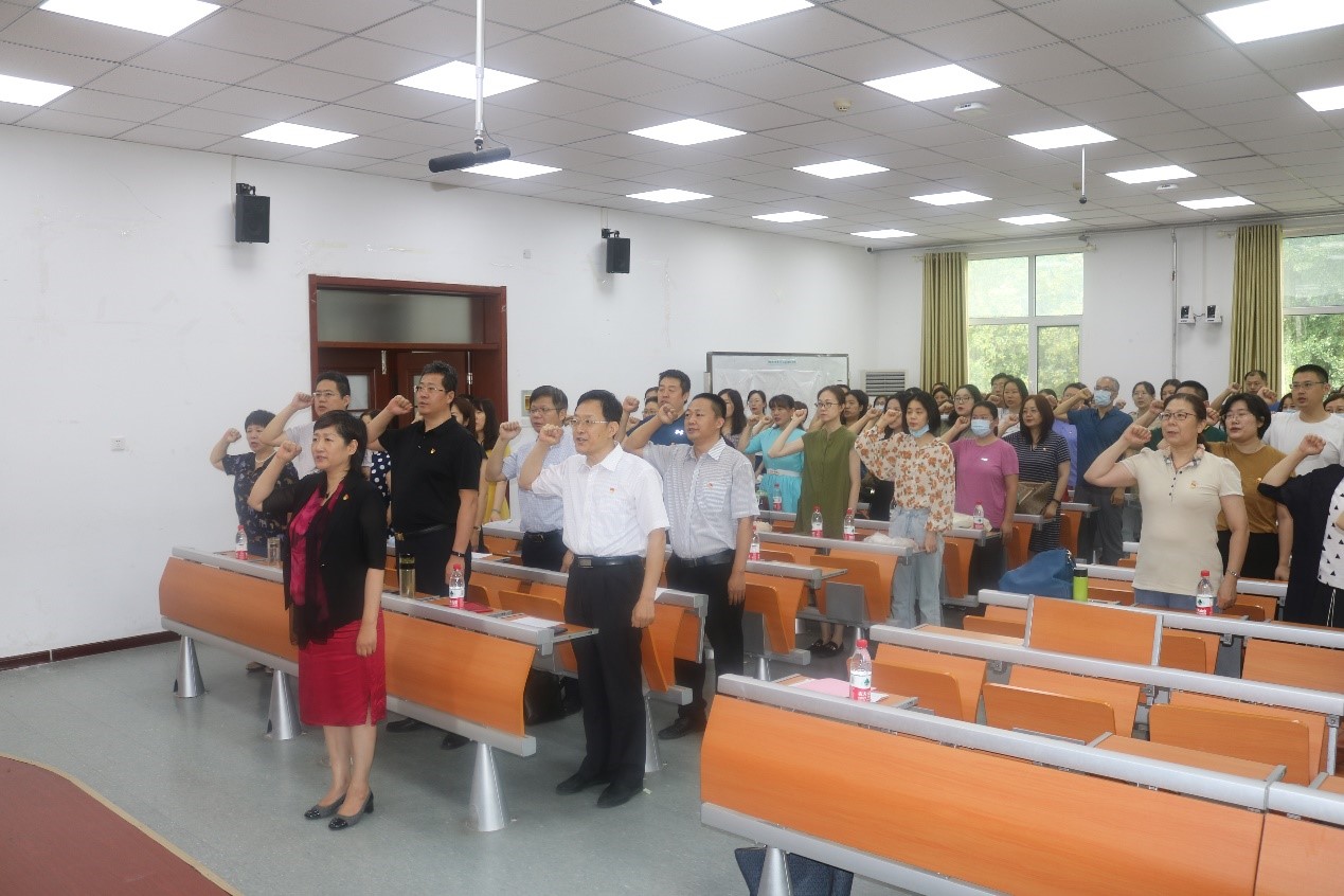 在王俊菊书记带领下,全体教工党员进行建党百年集体宣誓,共同重温入党誓词,以实际行动恪守对党的承诺,立足本职、争当先锋。