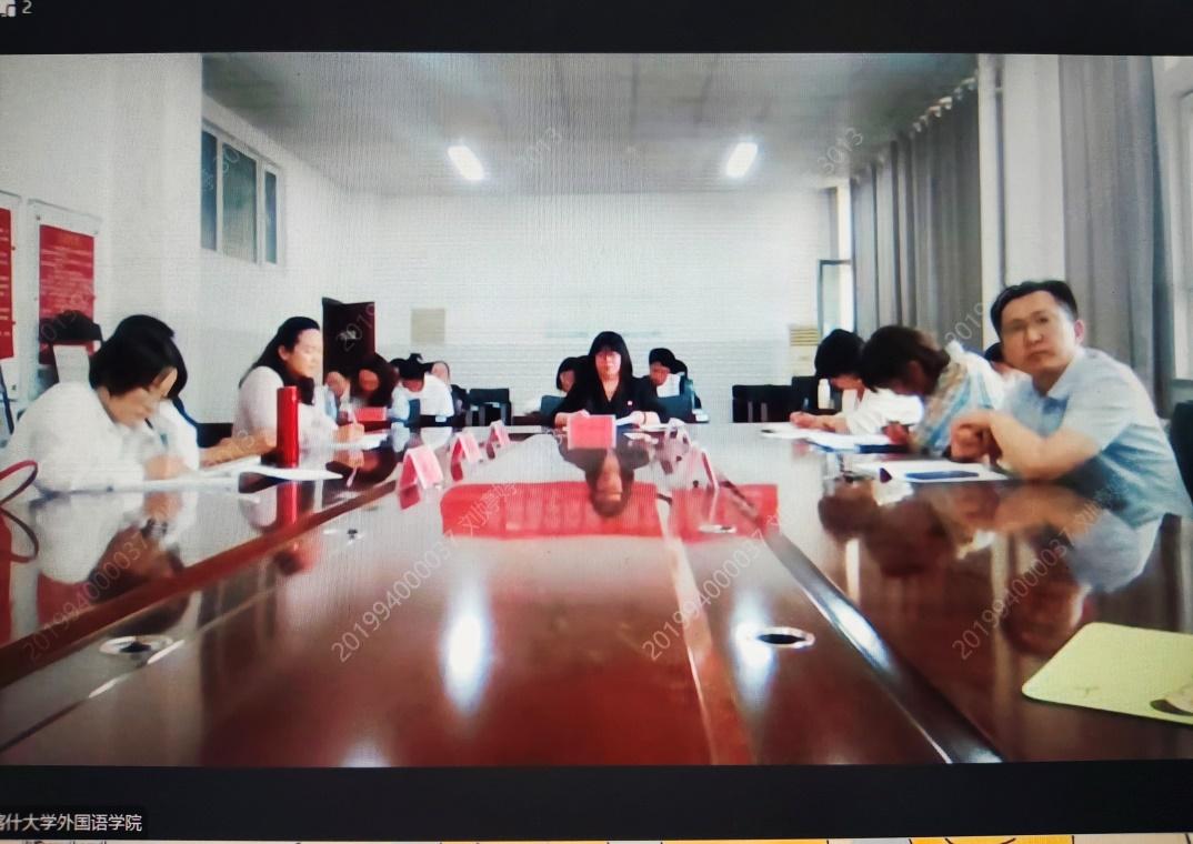 喀什大学金沙集团3354cc教师第一党支部书记舒进艳、第三党支部孙玉慧,金沙集团3354cc翻译学研究团队党支部书记胡志军、外国文学研究团队党支部书记李保杰作为共建党支部代表,分别介绍了各自支部的基本情况,分析了支部建设的工作特色与亮点成绩,提出了共建需求。