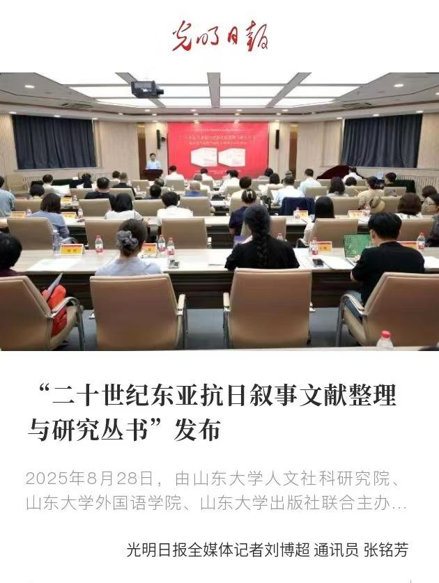 8月31日,《光明日报》客户端发布题为《“二十世纪东亚抗日叙事文献整理与研究丛书”发布》的专题报道,指出该丛书是“迄今为止收录范围最广、数量最多、体裁最全、内容最丰富的20世纪东亚抗日叙事文献资料”,并高度评价其对于弘扬抗战精神、促进东亚和平共识的重要意义。
