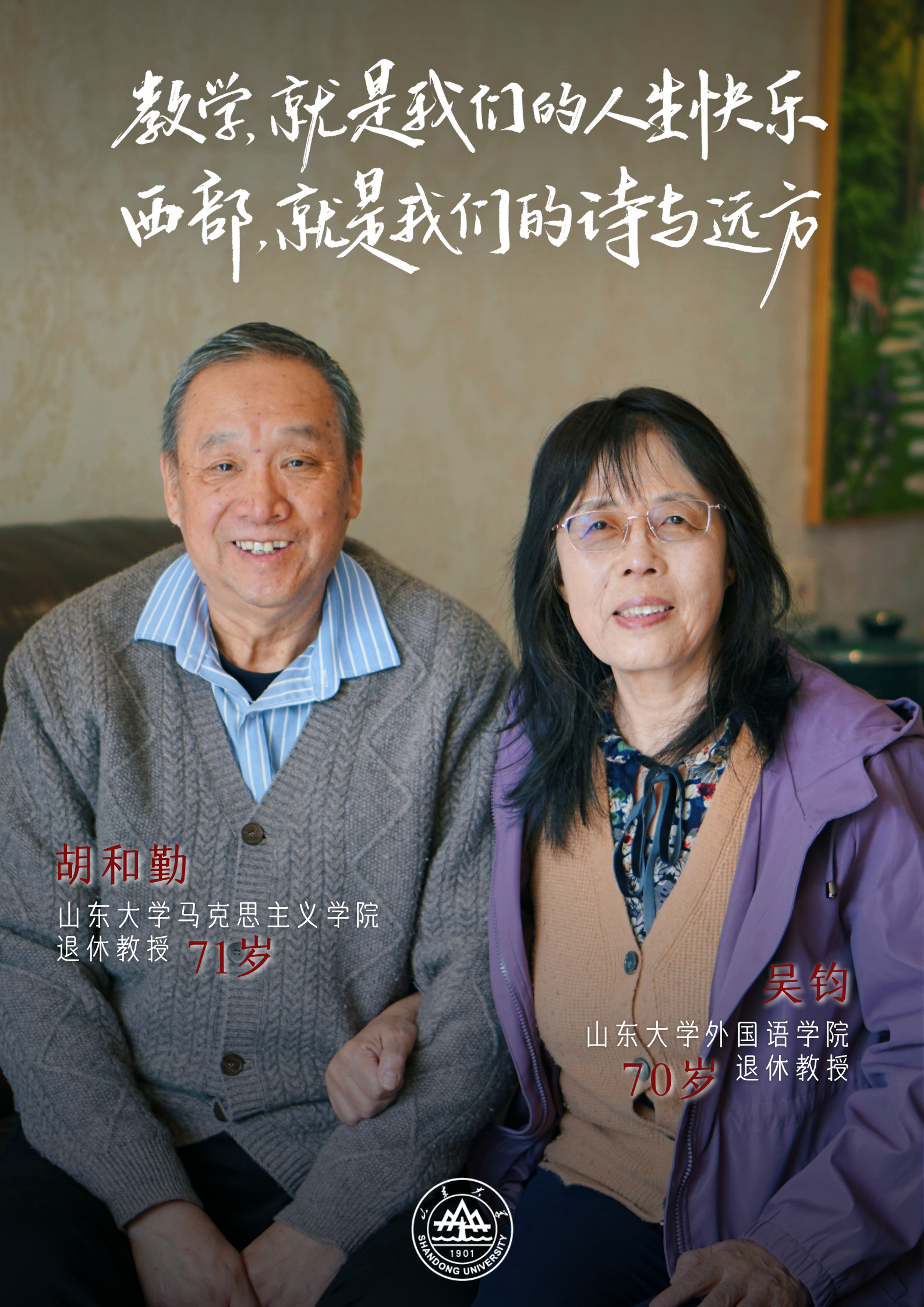 “一条黄河把我们连在一起。”这句话,是胡和勤与吴钧夫妇的真实写照。央视新闻曾推出“银龄教师”专题报道,以近9分钟的时间讲述了这对山大伉俪的故事,感动无数观众。